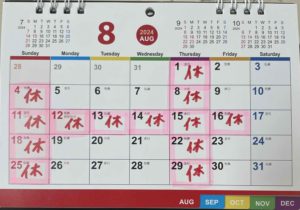 8月11日~16日を夏期休業とさせて頂きます。患者さまには多大なご迷惑をお掛けいたしますが、ご理解、ご協力のほど宜しくお願い致します。